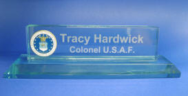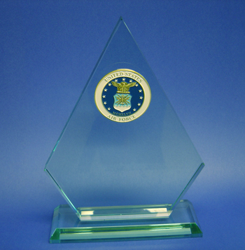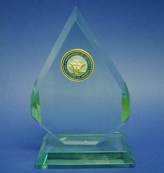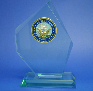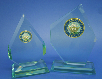 We have just received a new shipment of Military and Sports Insignias to adorn your Jade Glass Award and Nameplates. Also, remember this is a chance to expand your Glass Etching Business of even start a new business. Each Medallion is adhered to your Jade Glass Award or Nameplate with extreme care. We are so sure you will be pleased with these new additions - we gave them a special low price! Look at the close-ups below. |